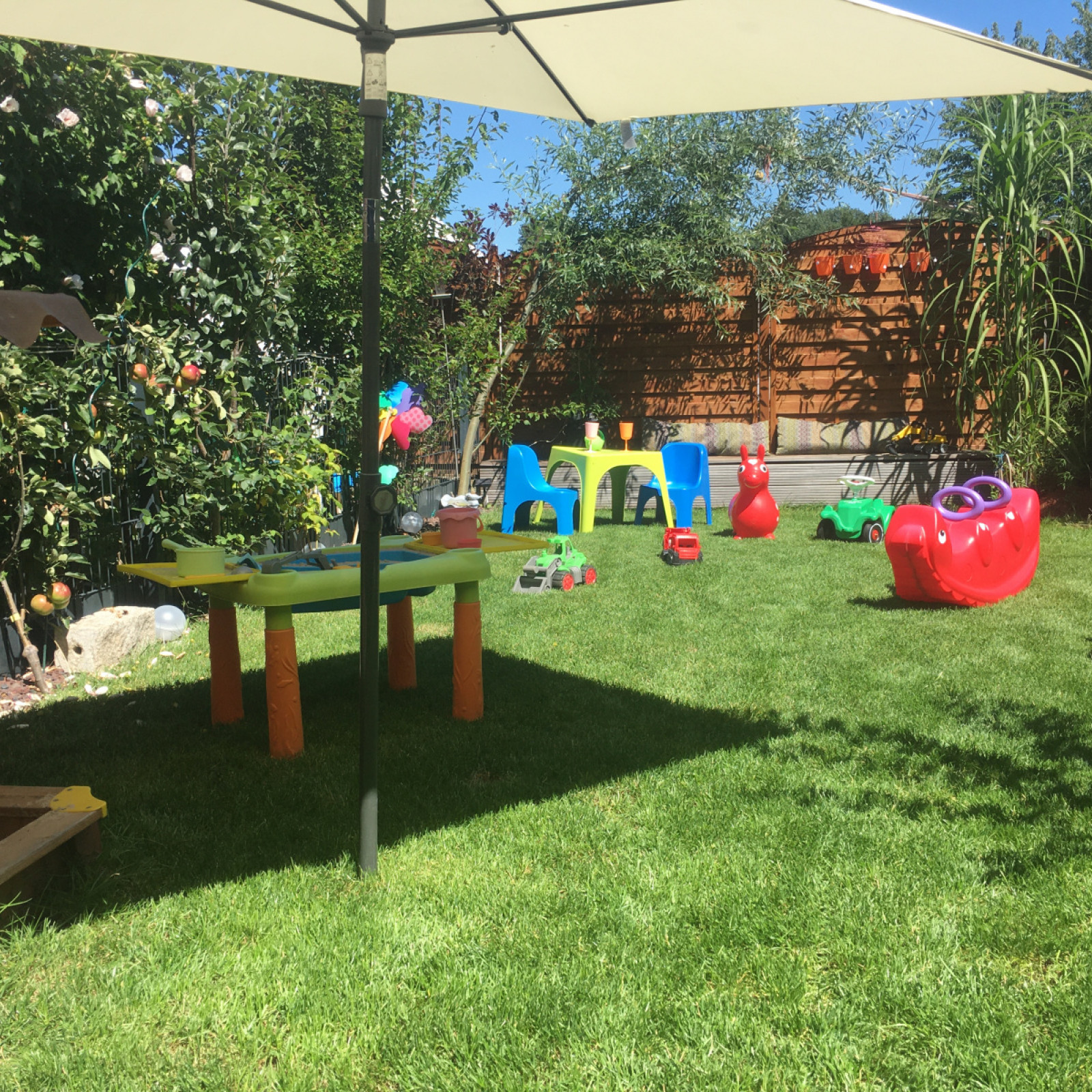 Was mir persönlich noch ganz wichtig ist, wir werden täglich nach draußen gehen und dort unsere Umwelt erforschen. Im Garten gibt es einen Sandkasten zum buddeln und matschen, ein Spielhaus und einige Fahrzeuge. In der Nähe befinden sich Spielplätze und ein großer Wald, indem wir unsere Bewegungsfreude ausleben können.